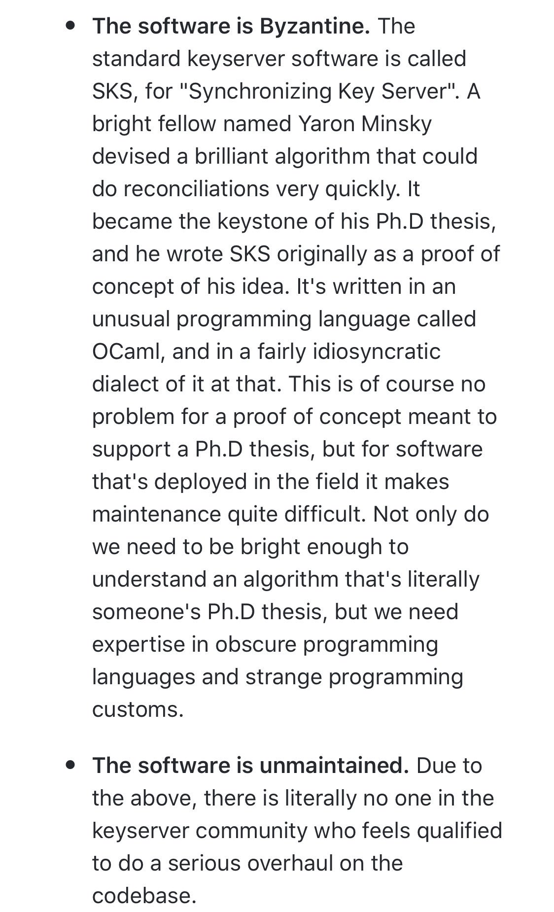 The problem seems basically unfixable, and oh god, of course the reason involves unmaintained academic code written in OCaml. pic.twitter.com/aScg3zns1C
